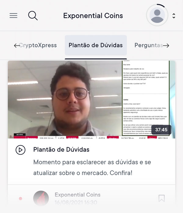 Acesso direto à equipe do Exponential Coins através de plantões de dúvida semanais, que você pode assistir em tempo real ou quando quiser, já que são gravados.